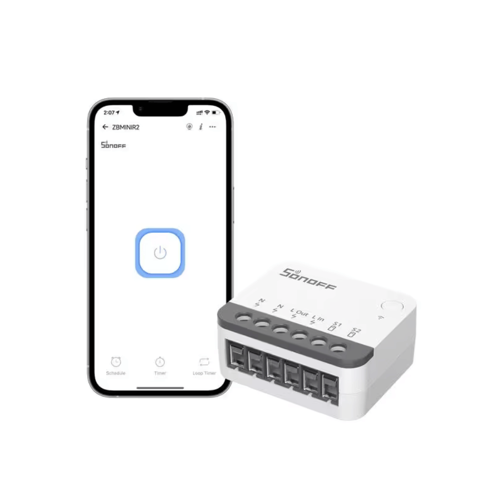 Das Zigbee-Modul Sonoff ZBMINIR2-Schalter bietet die Möglichkeit, ein Gerät/Beleuchtung in Ihrem Zuhause zu steuern und das Zigbee-Signal zu verstärken.