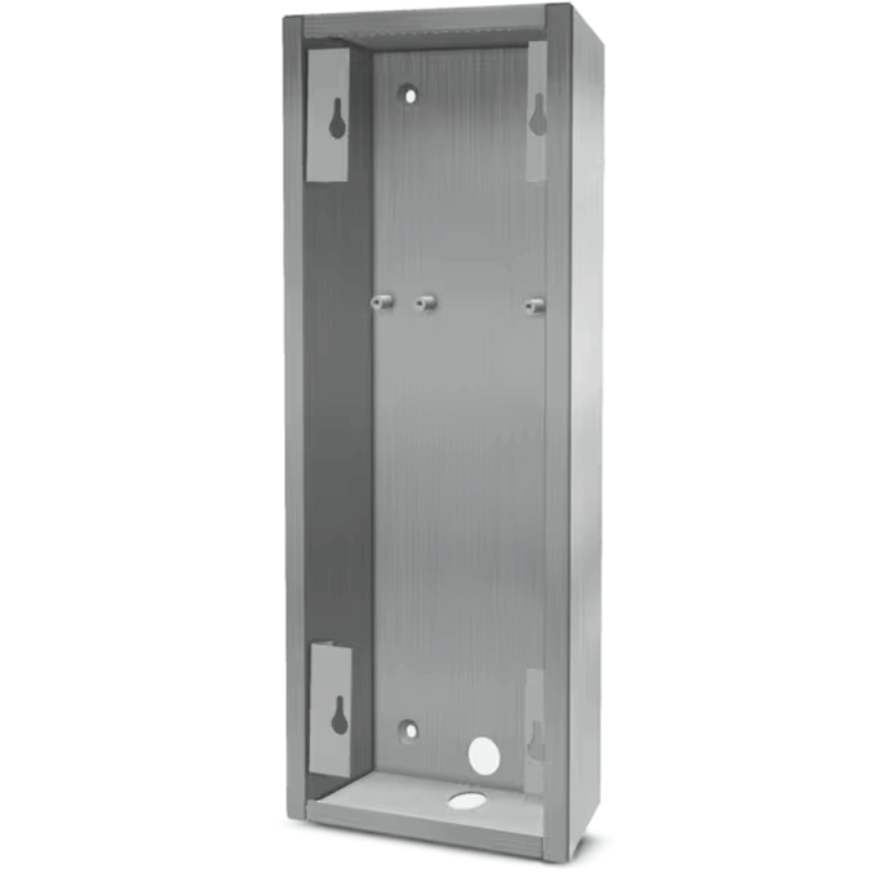 Dieses Gehäuse kann mithilfe von vier Schrauben sicher befestigt werden. Es wurde speziell für eine einfache und sichere Installation Ihres Doorbird-Portiers konzipiert.