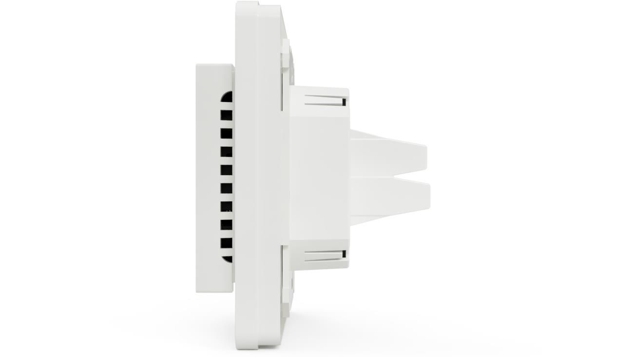 Heatit Z-TRM3fx is equipped with a single pole switch and it fits most System 55 frames (Elko RS16, Schneider Exxact, Gira, Jung etc.). The thermostat can withstand a load of max 16A /3600W at 230V. At higher loads the thermostat must control a contactor. The thermostat may be connected to two wired external sensors.