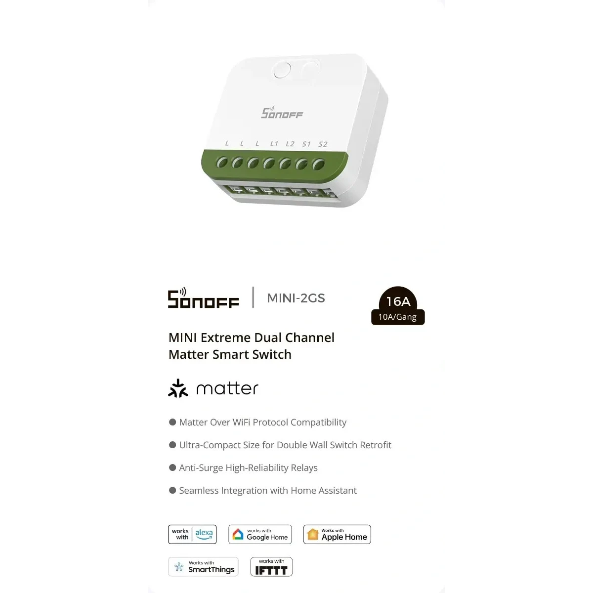 SONOFF MINI-2GS MINI DUO - Matter Wi-Fi Dual Channel Smart Switch 16A