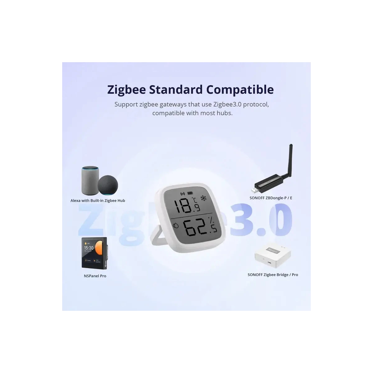 Sonoff SNZB-02WD Zigbee Sensor IP65 with LCD screen. Accurate temperature & humidity measurement, battery life up to 2 years, ideal for indoor/outdoor home automation.