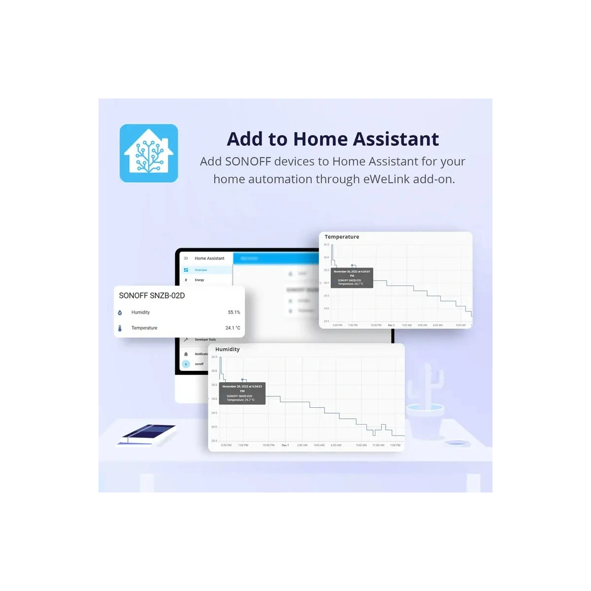 Intelligent automations and personalized alerts Create sophisticated home automation scenarios based on sensor readings: automatically activate your dehumidifier when humidity exceeds a critical threshold, trigger ventilation when the temperature rises, open your smart blinds to naturally cool down, or turn on the heating when it's too cold. Configure personalized push alerts that instantly notify you on your smartphone when conditions fall outside your defined comfort zone. These notifications allow for quick intervention to protect your greenhouse plants, monitor the wine cellar, control the baby's room, or simply optimize your daily comfort. The eWeLink device-sharing feature enables the whole family to receive important notifications.