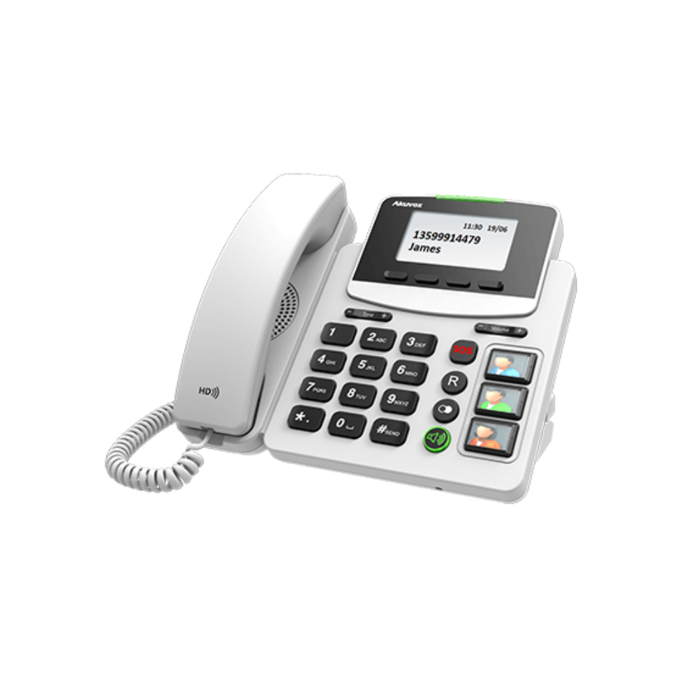 The Akuvox HCP-R15P is a corded telephone with large buttons and an emergency button. Easy to use, it has been specially designed for seniors.