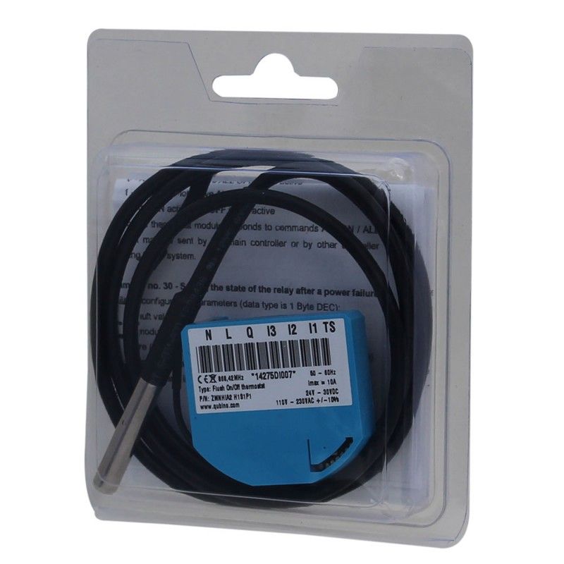Ce pack tout-en-un comprend un module compact Qubino et une sonde de température. Le module Qubino encastrable présent dans ce pack est conçu spécialement pour l'utilisation en thermostat, via une série de paramètres spéciaux.